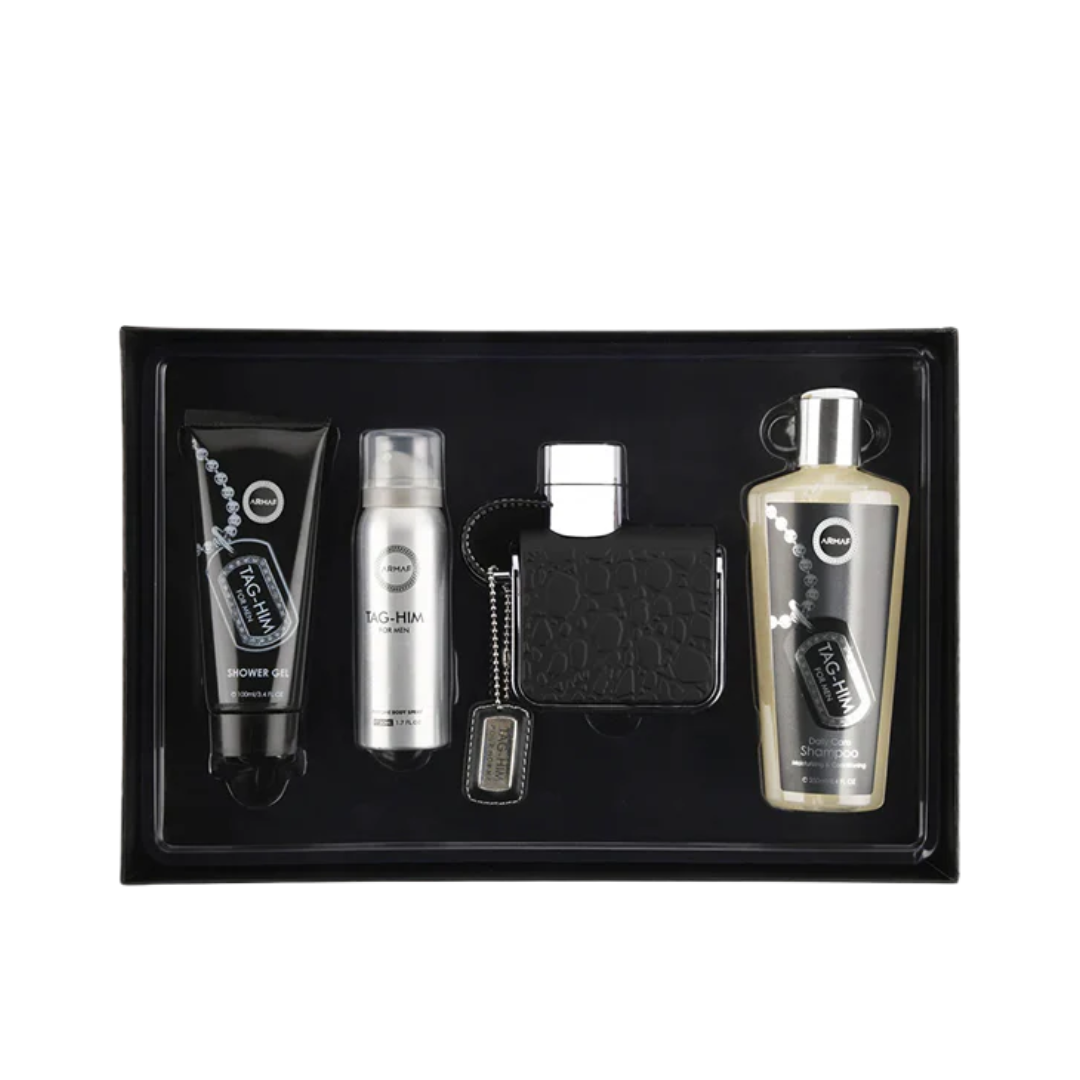 Refleja tu estilo y personalidad con el set de regalo Armaf Tag-Him Pour Homme, diseñado para el hombre moderno, activo y seguro de sí mismo. Este completo estuche incluye el eau de toilette, body spray, shampoo y gel de ducha, creando una experiencia integral que combina frescura, cuidado personal y distinción. Perfecto para quienes desean proyectar una imagen elegante y dinámica, este set es ideal para el uso diario y también para sorprender en cualquier ocasión especial.