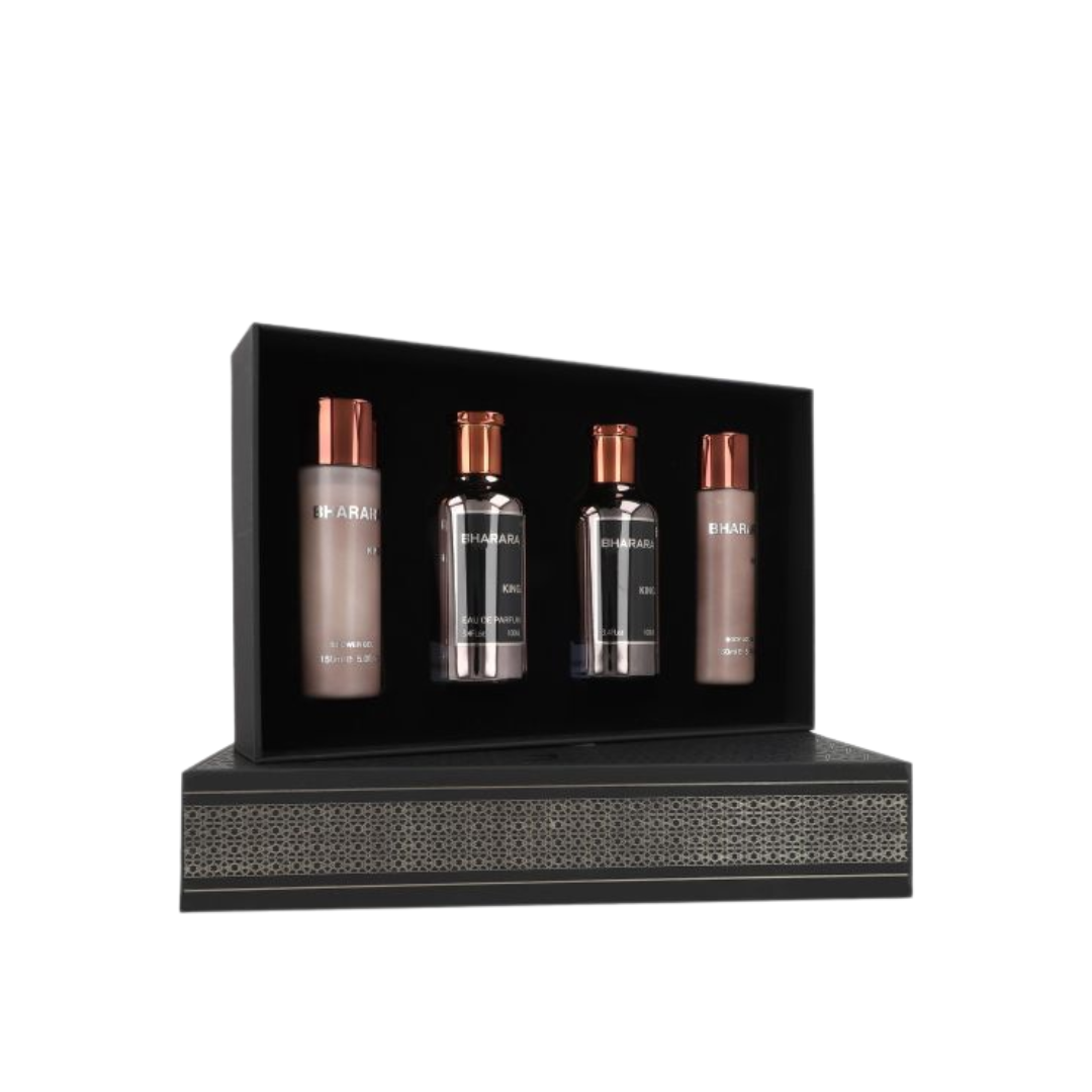 Descubre el lujo y la distinción con el set de regalo Bharara King, una experiencia olfativa diseñada para hombres que buscan proyectar poder, elegancia y sofisticación. Este exclusivo estuche incluye el eau de parfum en dos presentaciones, loción corporal y spray corporal, ofreciendo un ritual completo que envuelve los sentidos y realza la personalidad. Ideal para uso diario o para ocasiones especiales, este set es perfecto para quienes desean dejar una huella inolvidable y destacar con un estilo único.